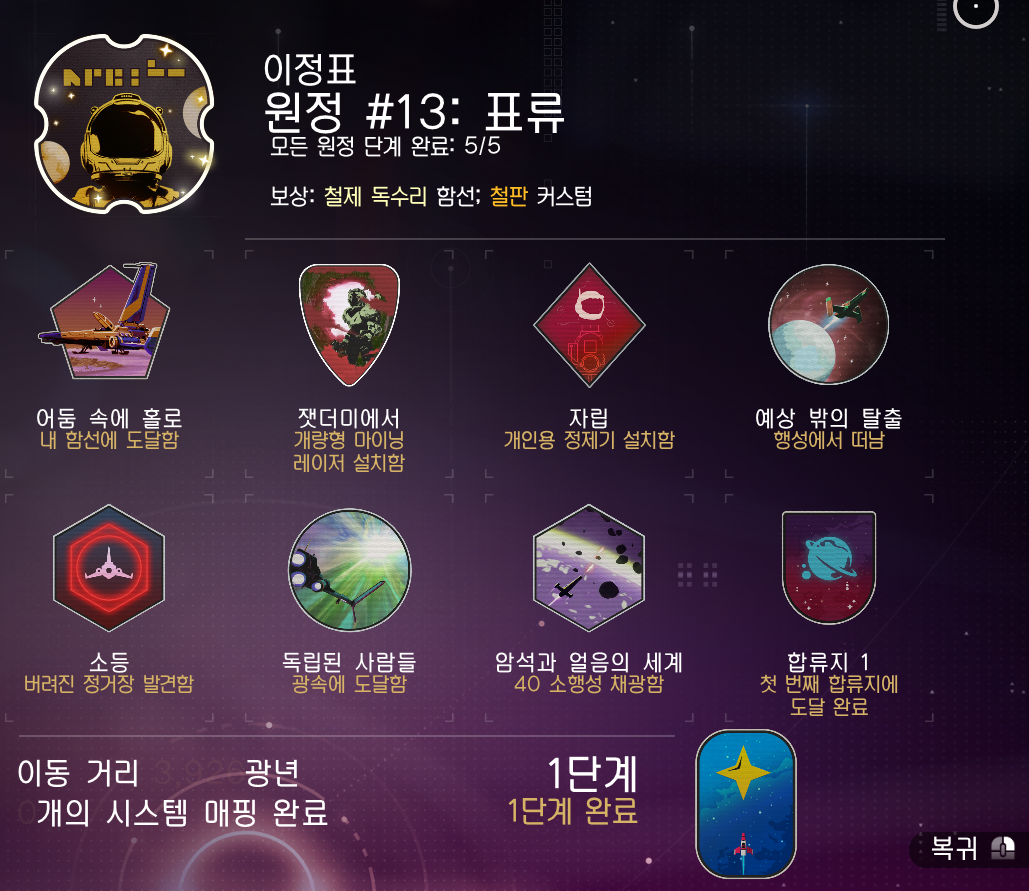 보상 : 함선 클래스 업그레이드, 함선 인벤토리 슬롯 5, 비상 신호 스캐너
