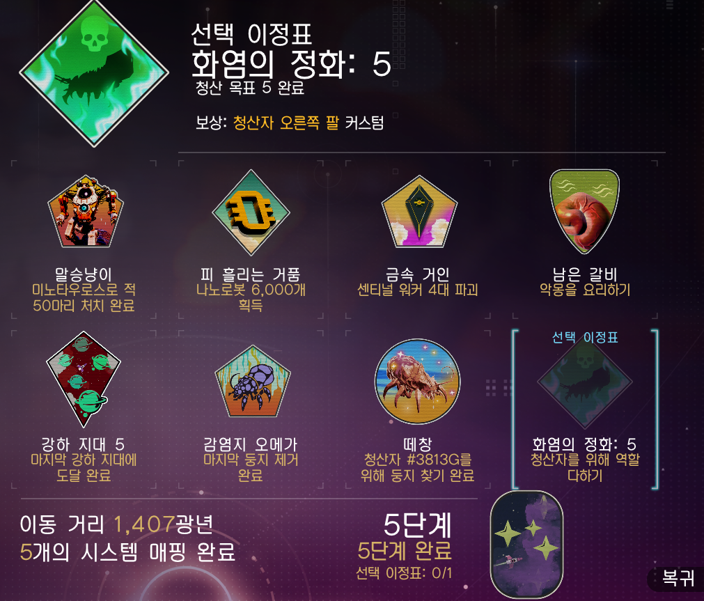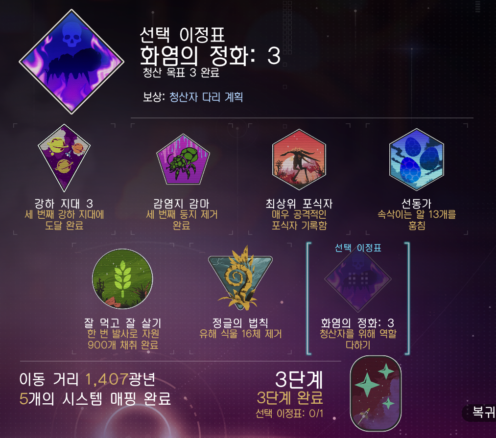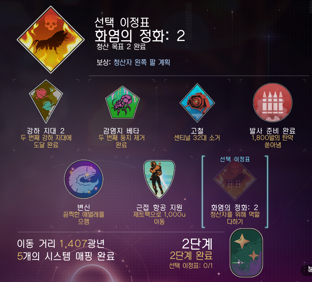보상 : 멀티툴 클래스 업그레이드, 행성 도표 3, 이온 배터리 5, 발사체 탄약 2500