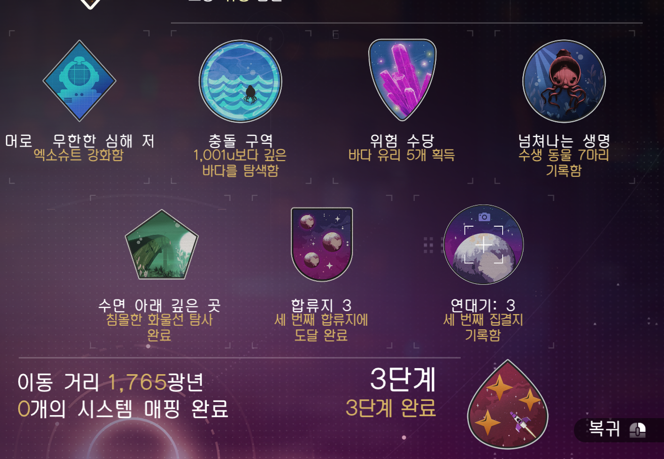 생물 9종류를 발견하시면 됩니다. 착륙하는 행성마다 하나정도씩 발견해 주세요.